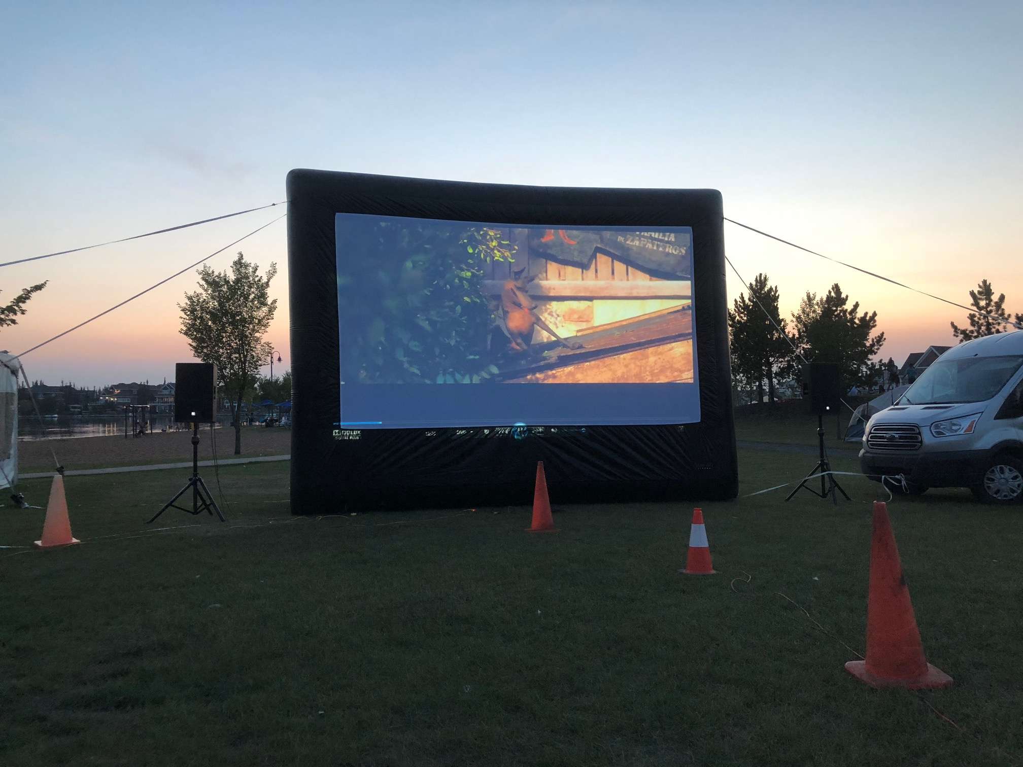 We will provide you with a MASSIVE inflatable movie screen, hi definition projector, Professional sound system and generators to set up your open-air Drive in.